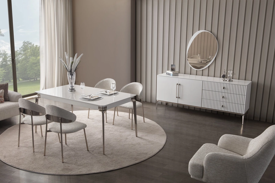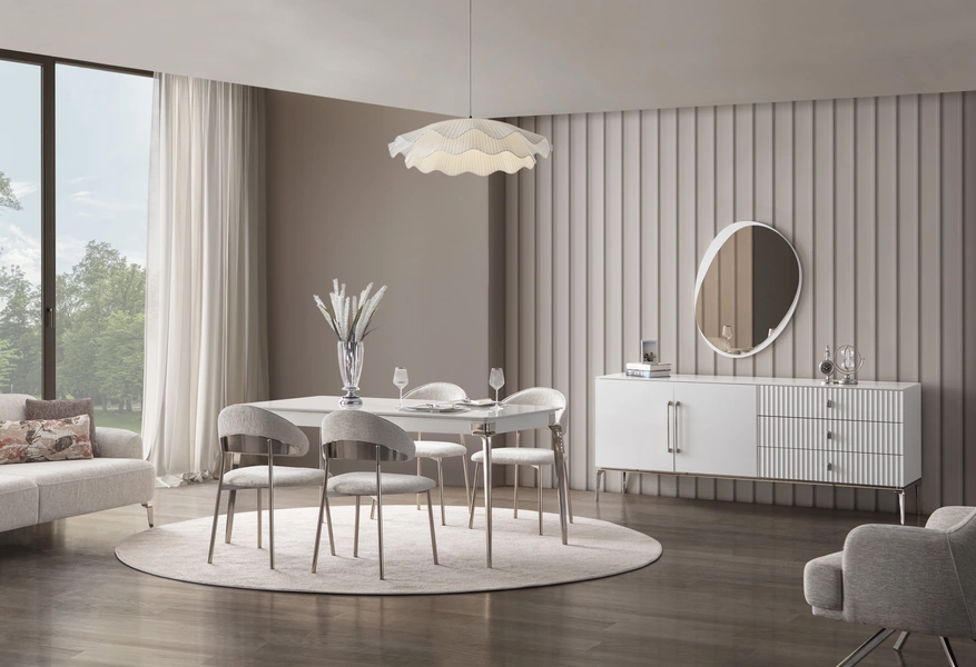 | Aynalı Konsol 1 adet Açılır Yemek Masası 1 adet Metal Sandalye (6 Adet) 1 adet | ||